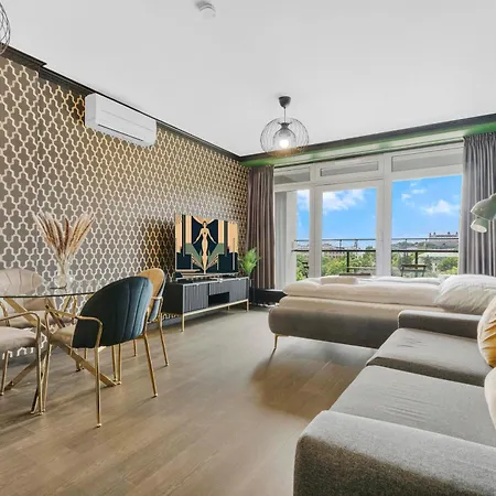 Staying at Lam Art Deco Castle View - Ac - Balcony Apartment Bratislava, guests can relax on a terrace 20 minutes' walk from the Blue Church. Wi-Fi and parking are also available at this apartment.